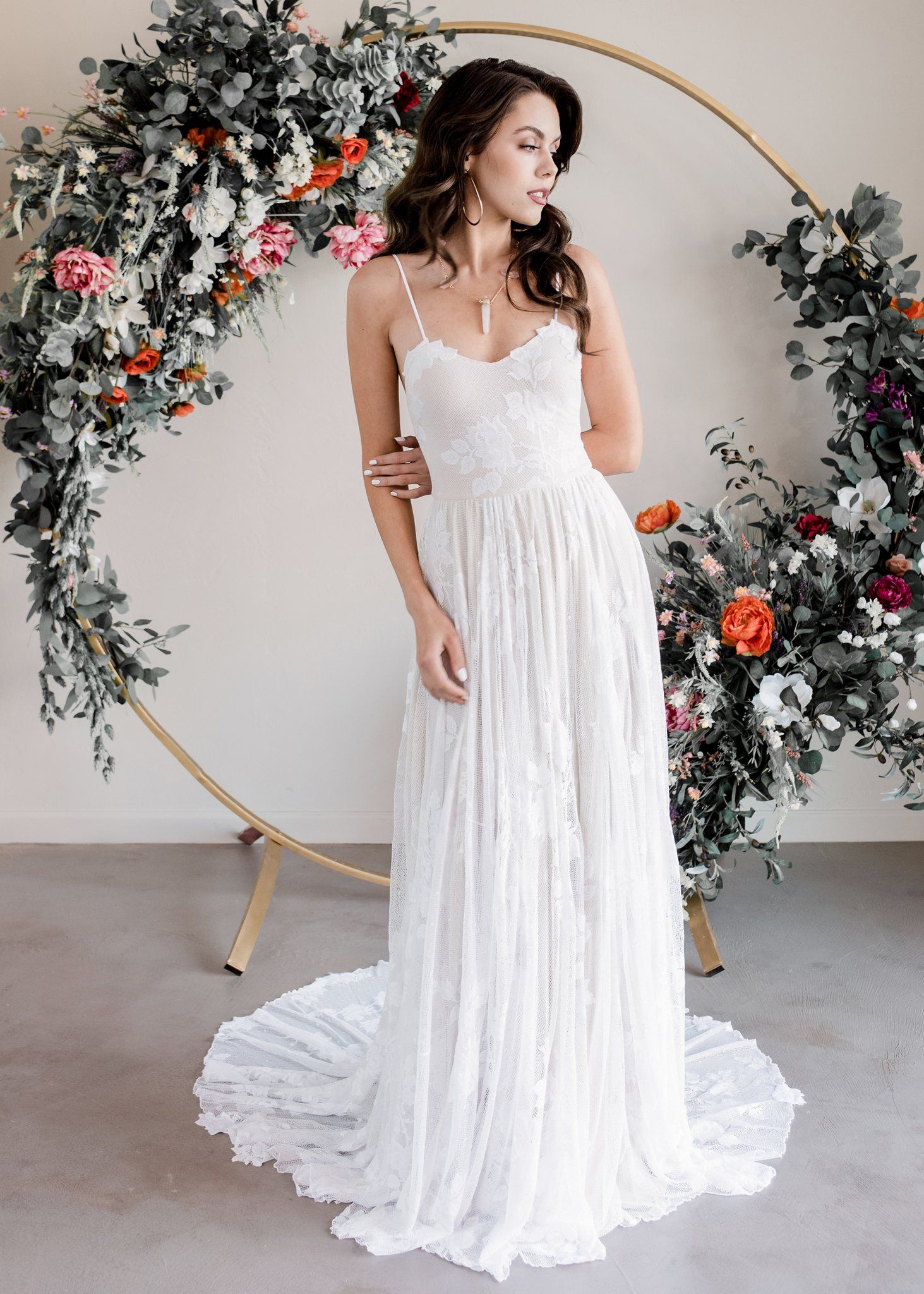 Spaghetti Strap Wedding Dresses V-neck Wedding Dresses Sweep Train Wedding Gown Lace Bridal Dresses White Wedding Dresses with White Lace,GD003