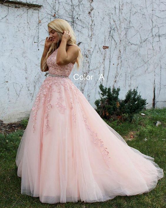 Pink Appliques A-line Long Prom Dresses For Women Floor Length Evening Dresses Womens Dresses,GD037