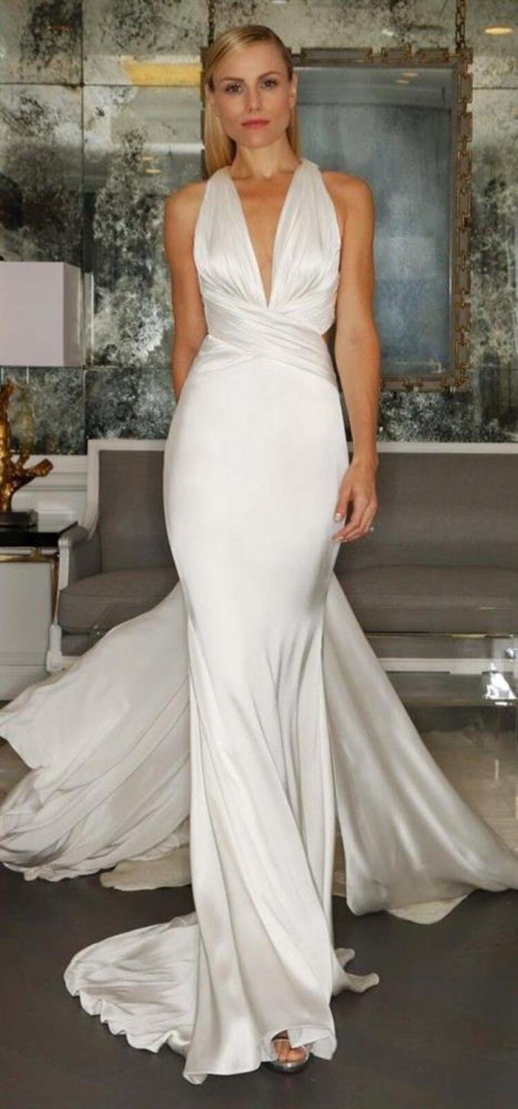 White Satin Deep V-neck Prom Dresses Sexy Long Womens Dresses Long Evening Dresses,GD050