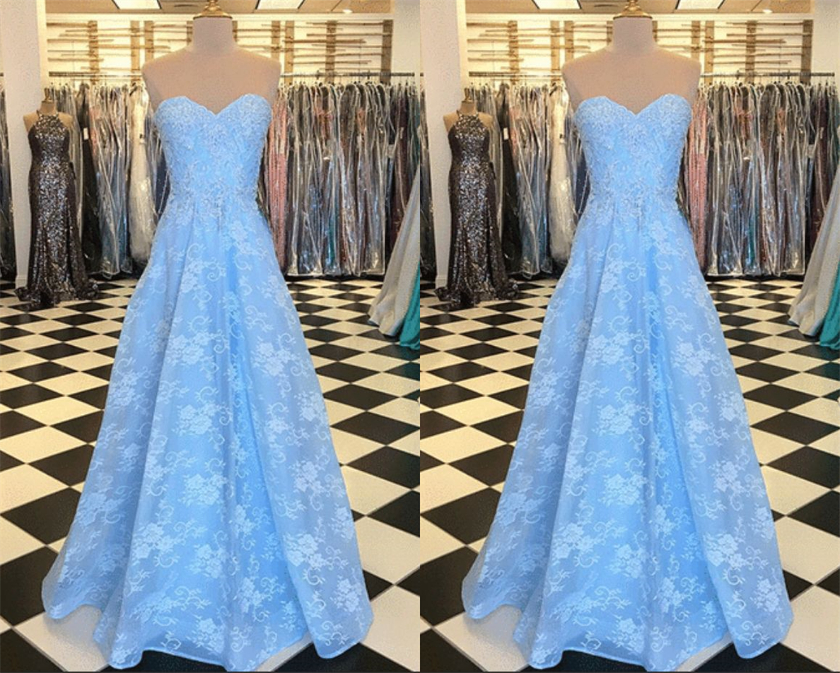 Blue Lace Sweetheart Neck Long Strapless Prom Dresses Long Lace Evening Dresses Womens Dresses,GD086