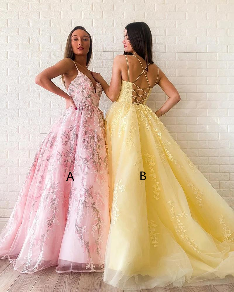 Spaghetti Straps Open Back Lace Prom Dresses V-neck Sexy Long Evening Dresses Long Floor Length Womens Dresses,GD093