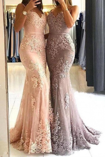 Lace Appliques Prom Dresses Mermaid Spaghetti Straps Long Evening Gown Womens Dresses,GD118