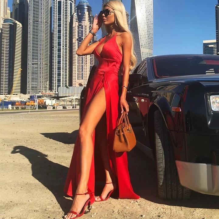 Deep V-neck Slit Womens Dresses Sexy Long Evening Party Dresses Womens Dresses,GD137