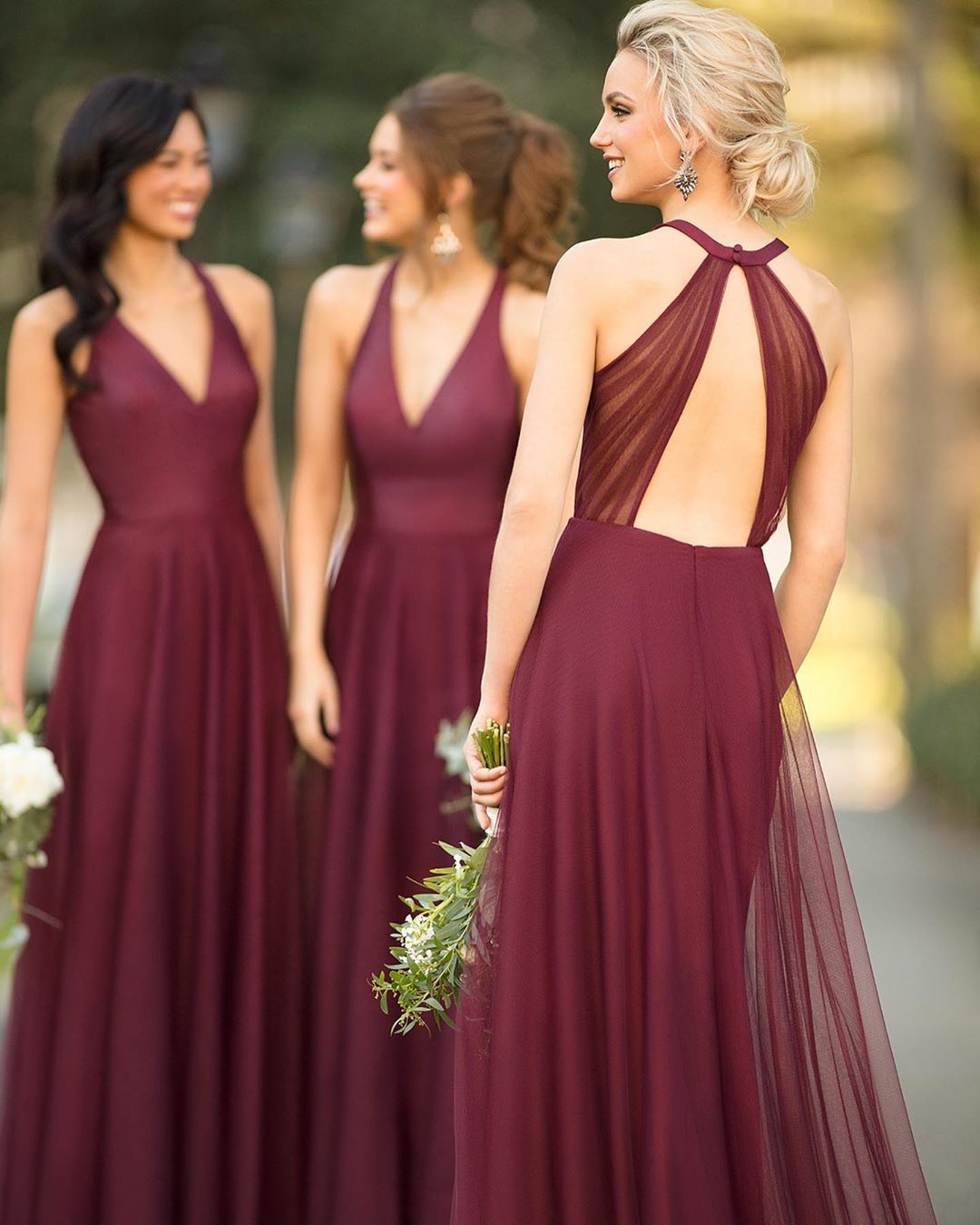 Sexy Tulle Bridesmaid Dresses Open Back Floor Length Bridesmaid Dress for Wedding,GD228