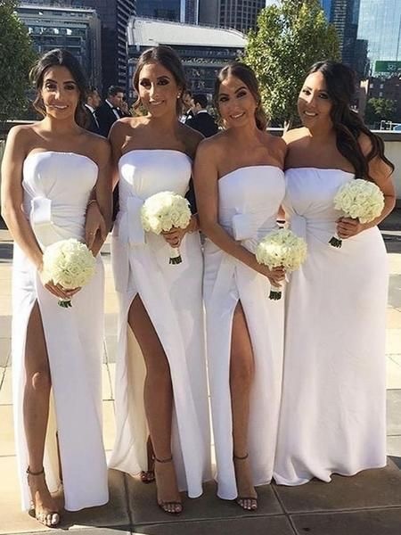 Strapless Mermaid Bridesmaid Dresses with Slit White Satin Bridesmaid Dress,GD244