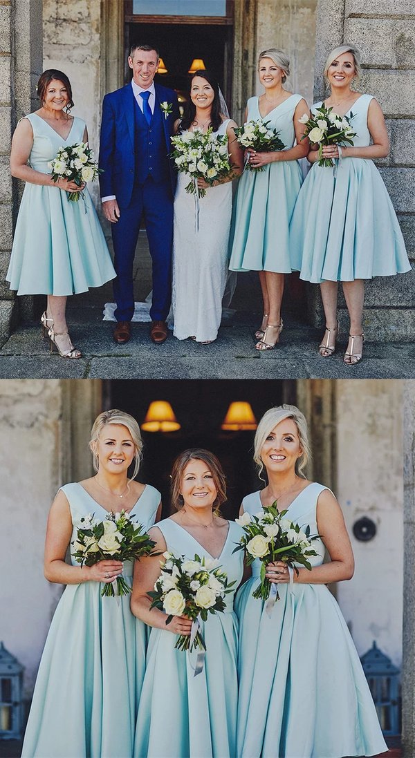 Simple Tea-length V-back Cheap Short Bridesmaid Dresses,GD266