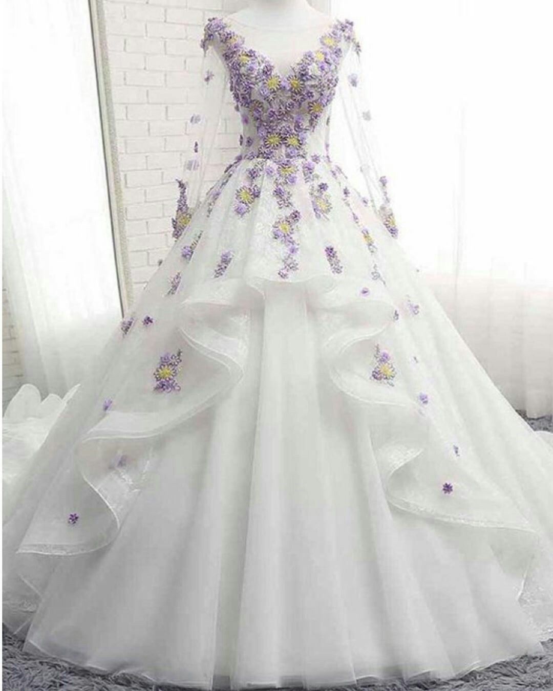Long Sleeves A-Line Prom Dresses V-neck Ball Gown Appliques Sweet 16 Dress,GD281