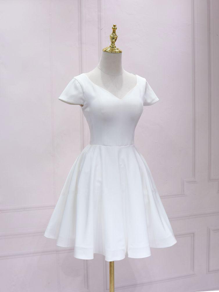 Cap Sleeves Homecoming Dresses White Satin School Event Dresses School Back Party Dresses Short Cocktail Dresses,GD320