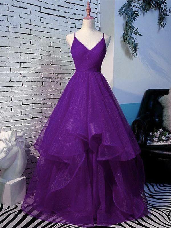 Spaghetti Straps Prom Dress for Women Long A-line Evening Dresses Purple Formal Gown,GD476