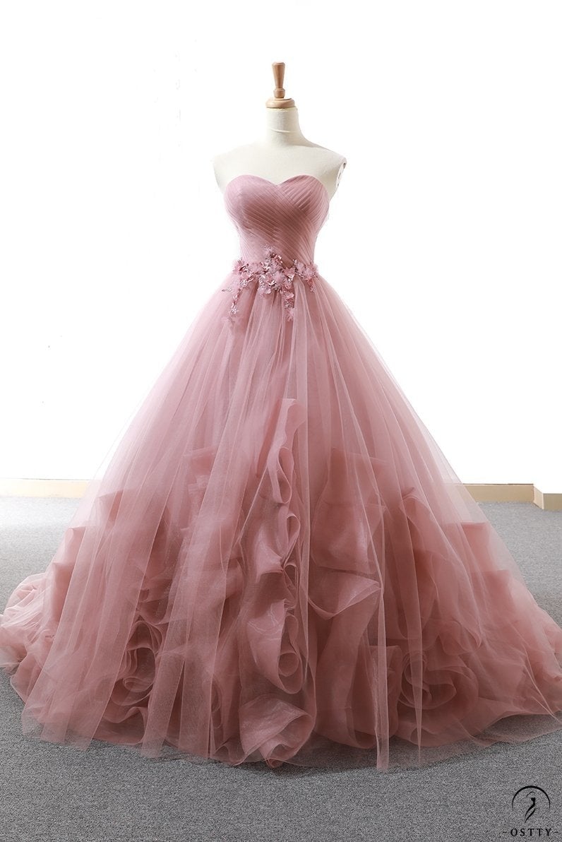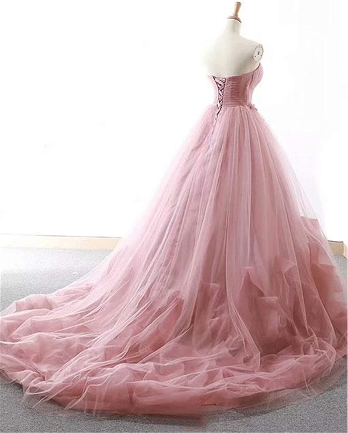 Prom Dresses Sweetheart A-line Evening Dresses Tulle Ball Gown Pink Tulle Evening Gown,GD539