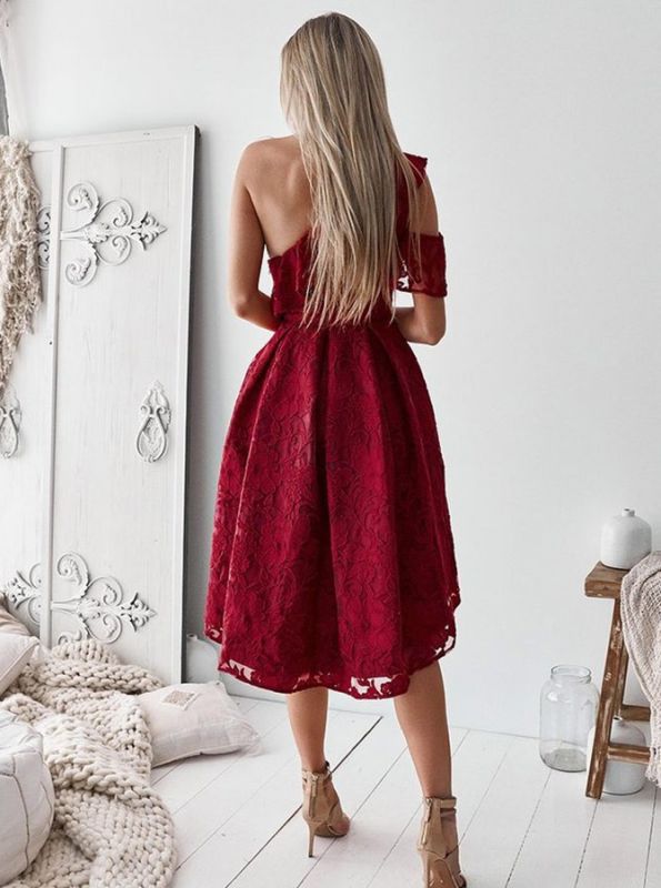 Red Lace One Shoulder A-line Homecoming Dress Short Party Gown,GD545